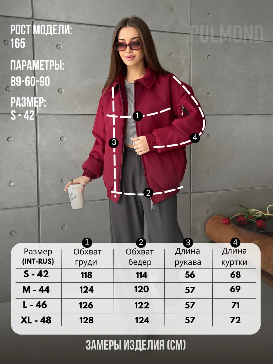 Бомбер утепеленный унисекс - это непревзойденная классика в мире женской и унисекс верхней одежды. Представляем вам стильную и универсальную женскую осеннюю куртку - женский утепленный бомбер российского бренда PULMOND. Эта демисезонная унисекс куртка идеально подойдет как для женщин, так и для подростков. Благодаря своему утепленному материалу, эта осенняя и весенняя куртка обеспечит тепло и комфорт в прохладные осенние и весенние дни. Поездки на природу и прогулки с друзьями по парку станут для вас настоящим праздником в этой универсальной повседневной куртке. Особенностью этой куртки является ее overize крой, который делает ее свободной и удобной в носке. Выбирая данный бомбер, вы получаете удобную вещь, которую легко совмещать с любым повседневным образом. Пилотный стиль, известный также как куртка пилот MA-1, добавит вашему образу особый стиль. Благодаря своей внешней ткани из мягкого авиационного нейлона, бомбер обеспечивает полную защиту от холода и ветра. Последнее время свободный крой рекомендуют ведущие стилисты мира. Не упусти возможность приобрести тренд 2025 года и добавить базовый бомбер в свой гардероб уже сегодня!