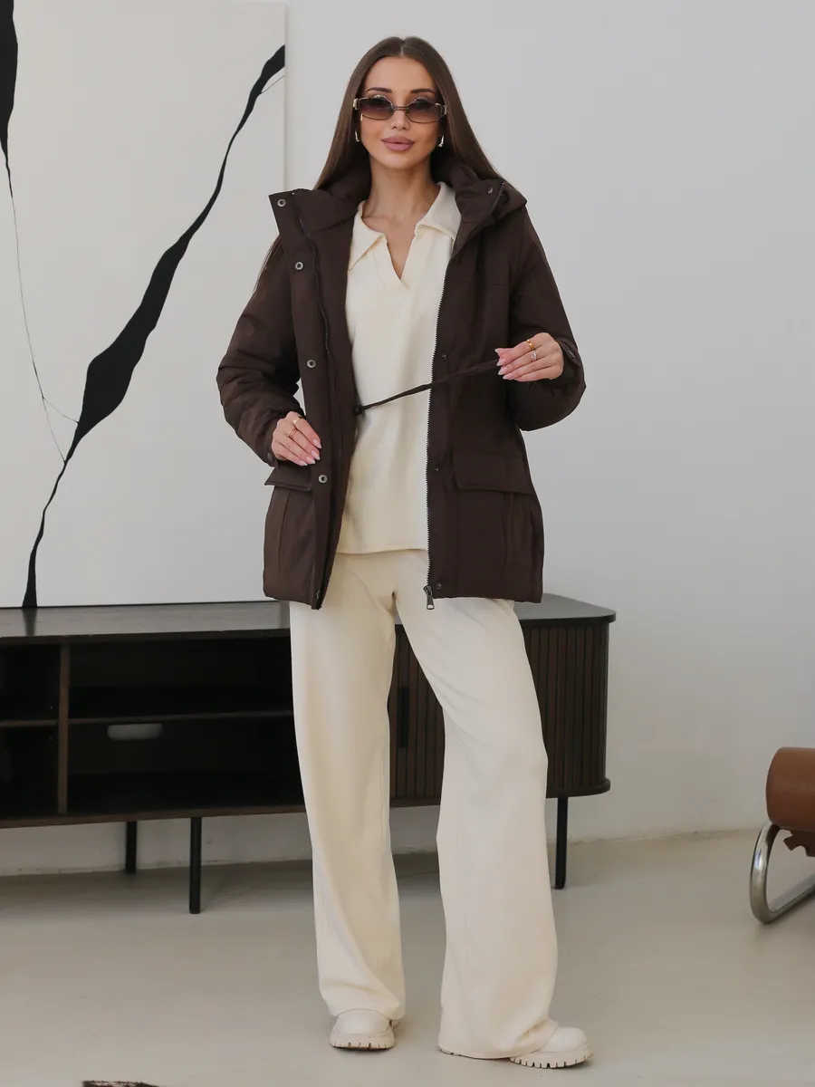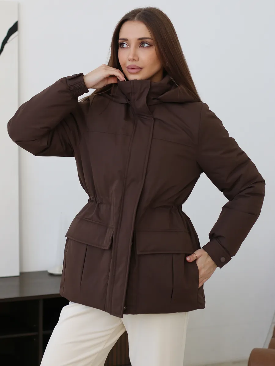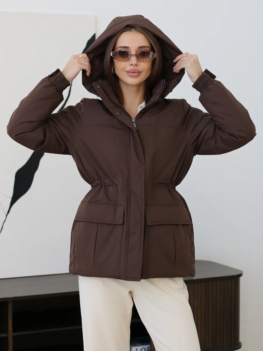 Куртка оснащена молнией и кнопками . Съемный капюшон позволяет адаптировать внешний вид куртки под различные погодные условия. Накладные карманы предлагают дополнительное пространство для хранения мелких предметов. Утяжка на талии делает куртку стильной и актуальной.