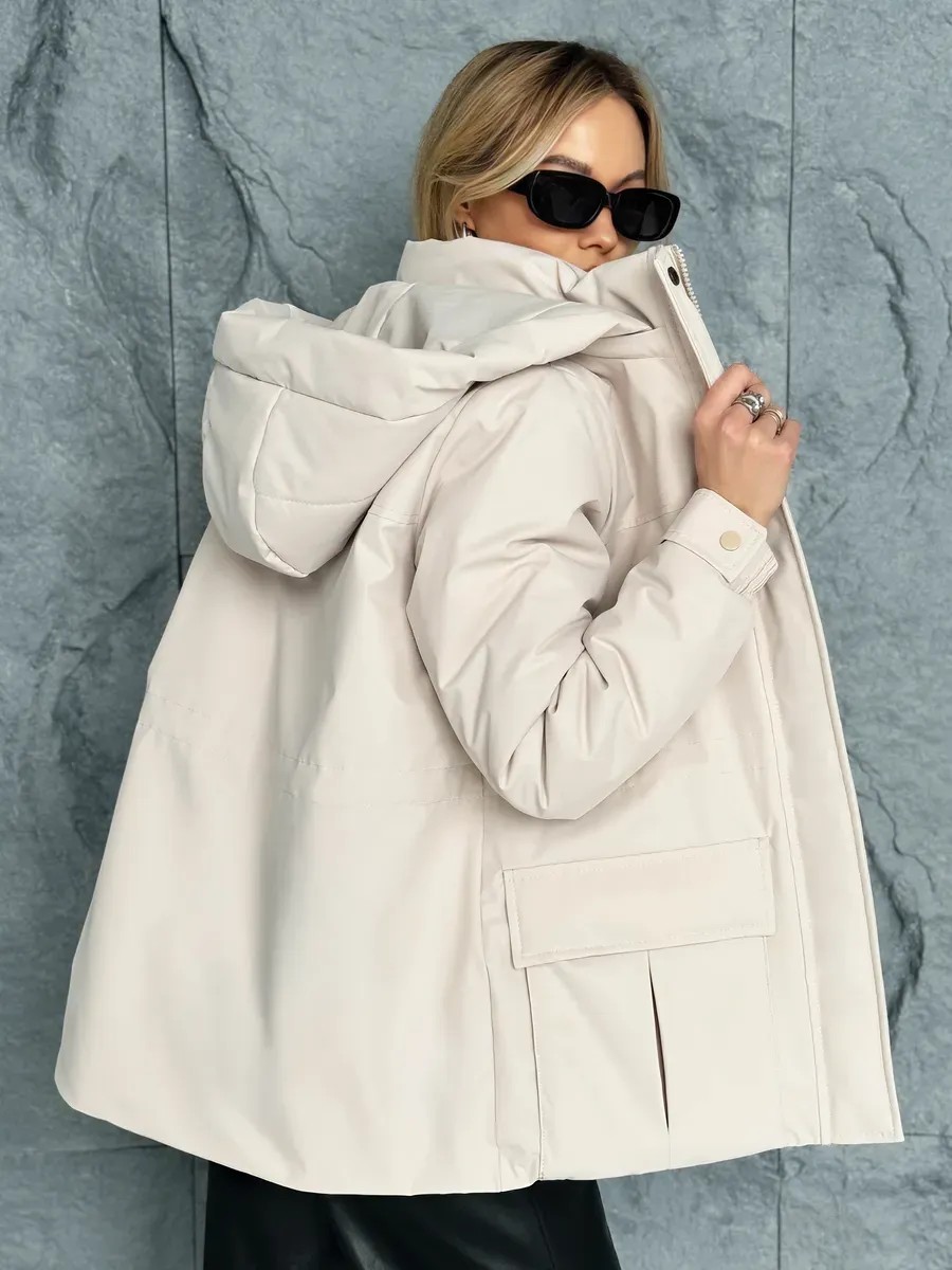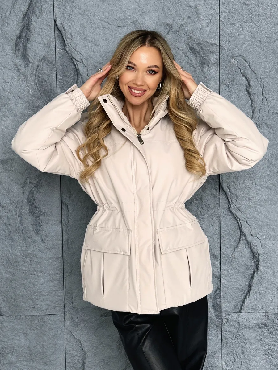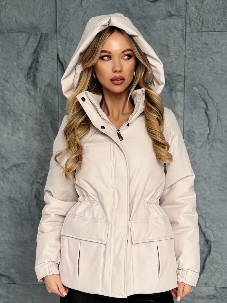 Куртка оснащена молнией и кнопками . Съемный капюшон позволяет адаптировать внешний вид куртки под различные погодные условия. Накладные карманы предлагают дополнительное пространство для хранения мелких предметов. Утяжка на талии делает куртку стильной и актуальной.