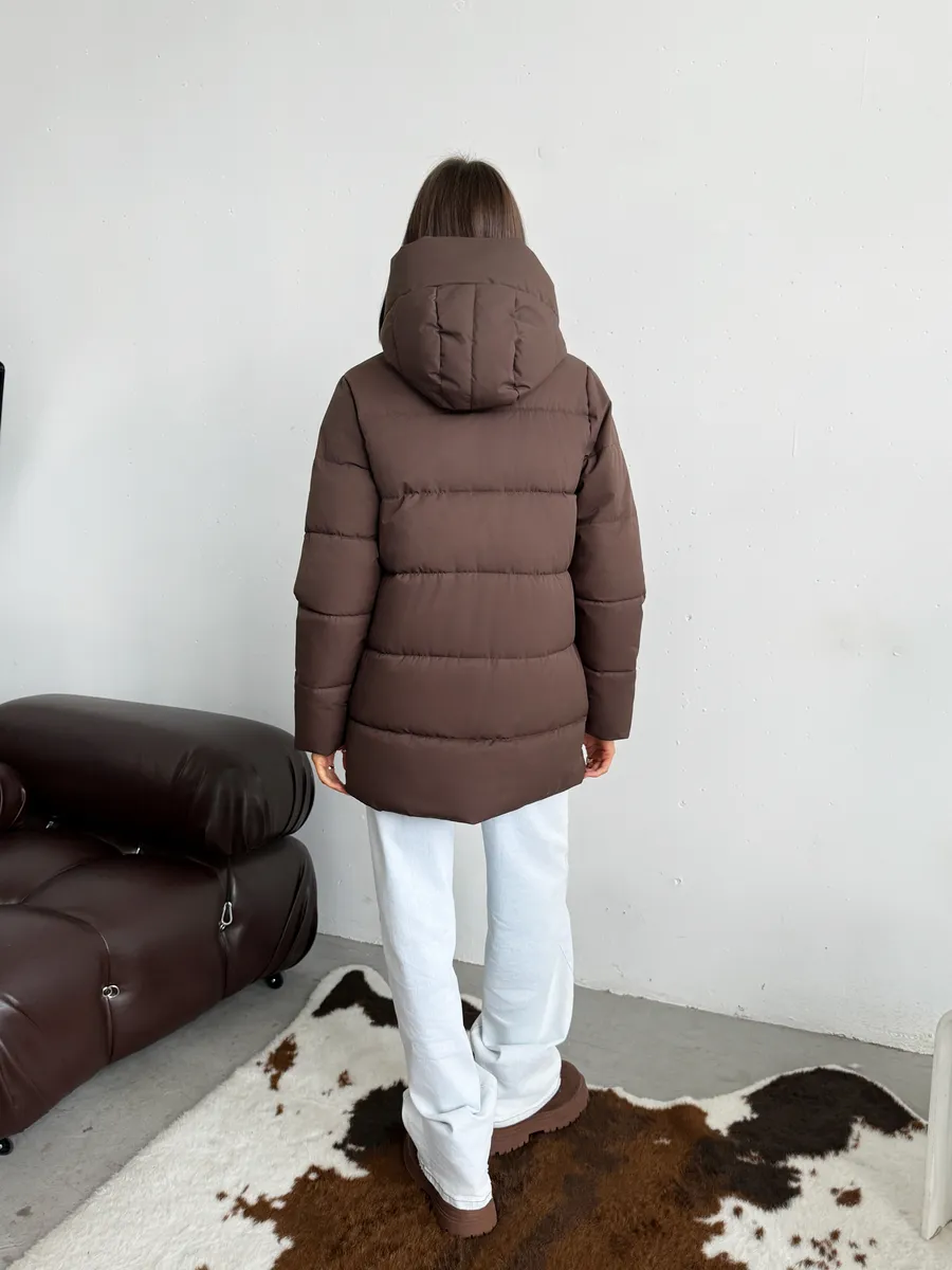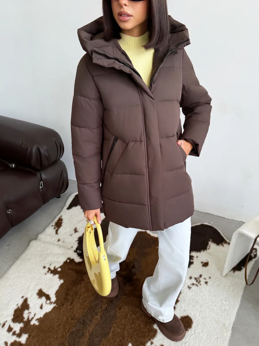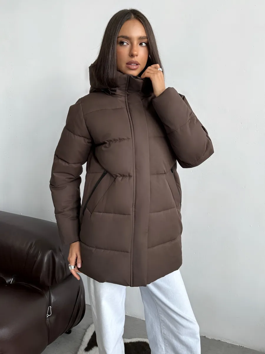 Представляем вам женскую утепленную куртку, идеально подходящую для осеннего сезона. Эта удлиненная куртка с капюшоном станет вашим надежным спутником в прохладные дни, обеспечивая теплоту и комфорт.