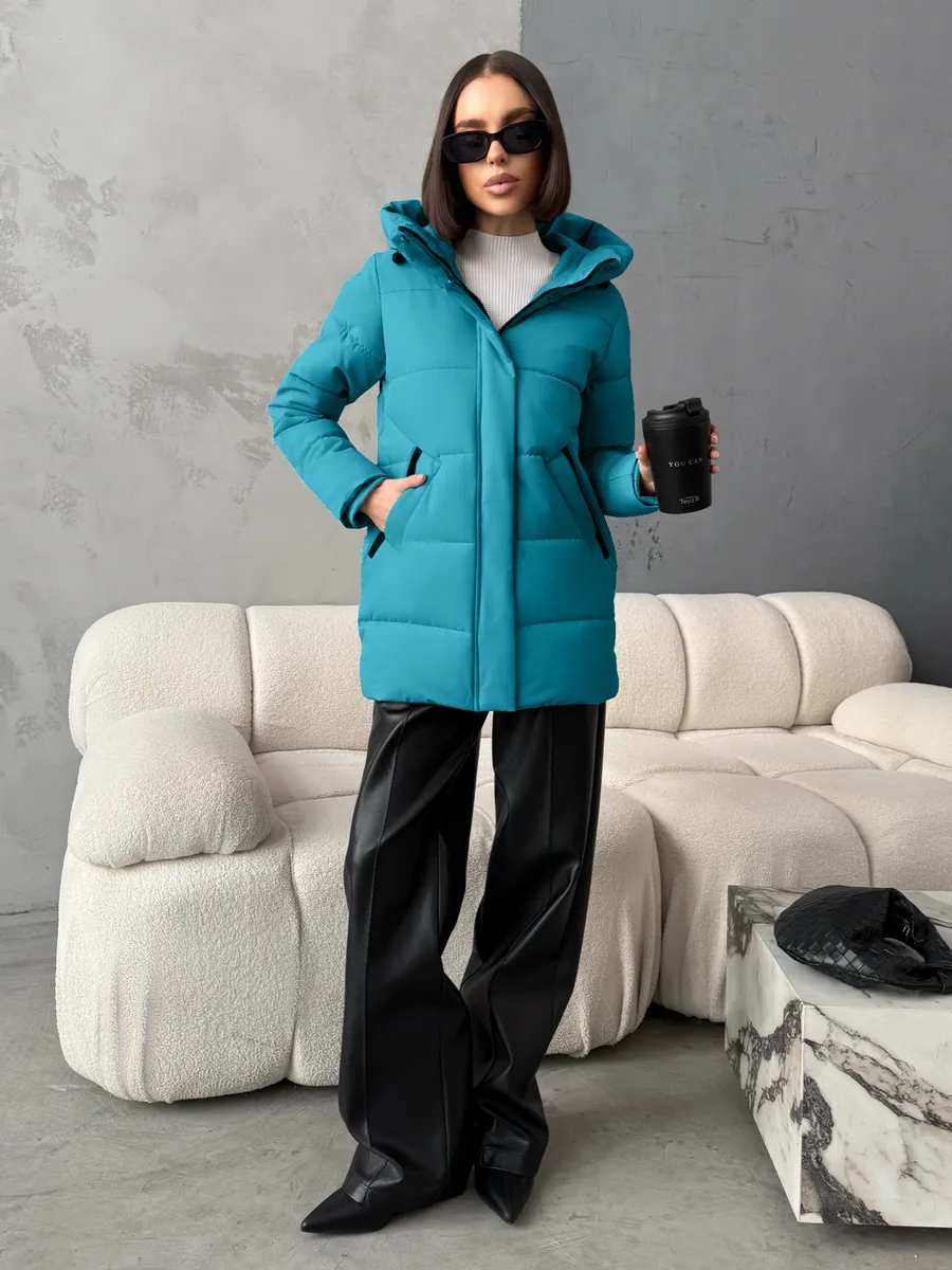 Женская весенняя куртка удлиненная с капюшоном PULMOND станет незаменимым элементом вашего гардероба в прохладные весенние дни. Эта стильная куртка, выполненная из водоотталкивающего материала, обеспечит вам комфорт и защиту от ветра при температуре от -5 °C до +10 °C. Удлиненный покрой и несъемный капюшон добавят вам уюта, а прорезные и потайные карманы позволят удобно хранить необходимые мелочи. Куртка застегивается на молнию и кнопки, а матовая фактура материала придает ей элегантный вид.