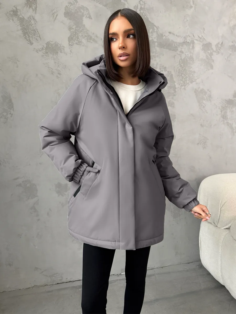 Женская весенняя куртка удлиненная с капюшоном PULMOND станет незаменимым элементом вашего гардероба в прохладные весенние дни. Эта стильная куртка, выполненная из водоотталкивающего материала, обеспечит вам комфорт и защиту от ветра при температуре от -5 °C до +10 °C. Удлиненный покрой и несъемный капюшон добавят вам уюта, а прорезные и потайные карманы позволят удобно хранить необходимые мелочи. Куртка застегивается на молнию и кнопки, а матовая фактура материала придает ей элегантный вид.