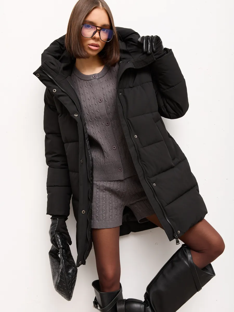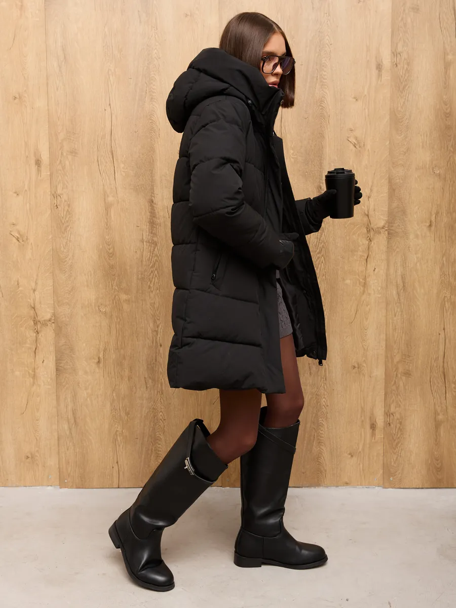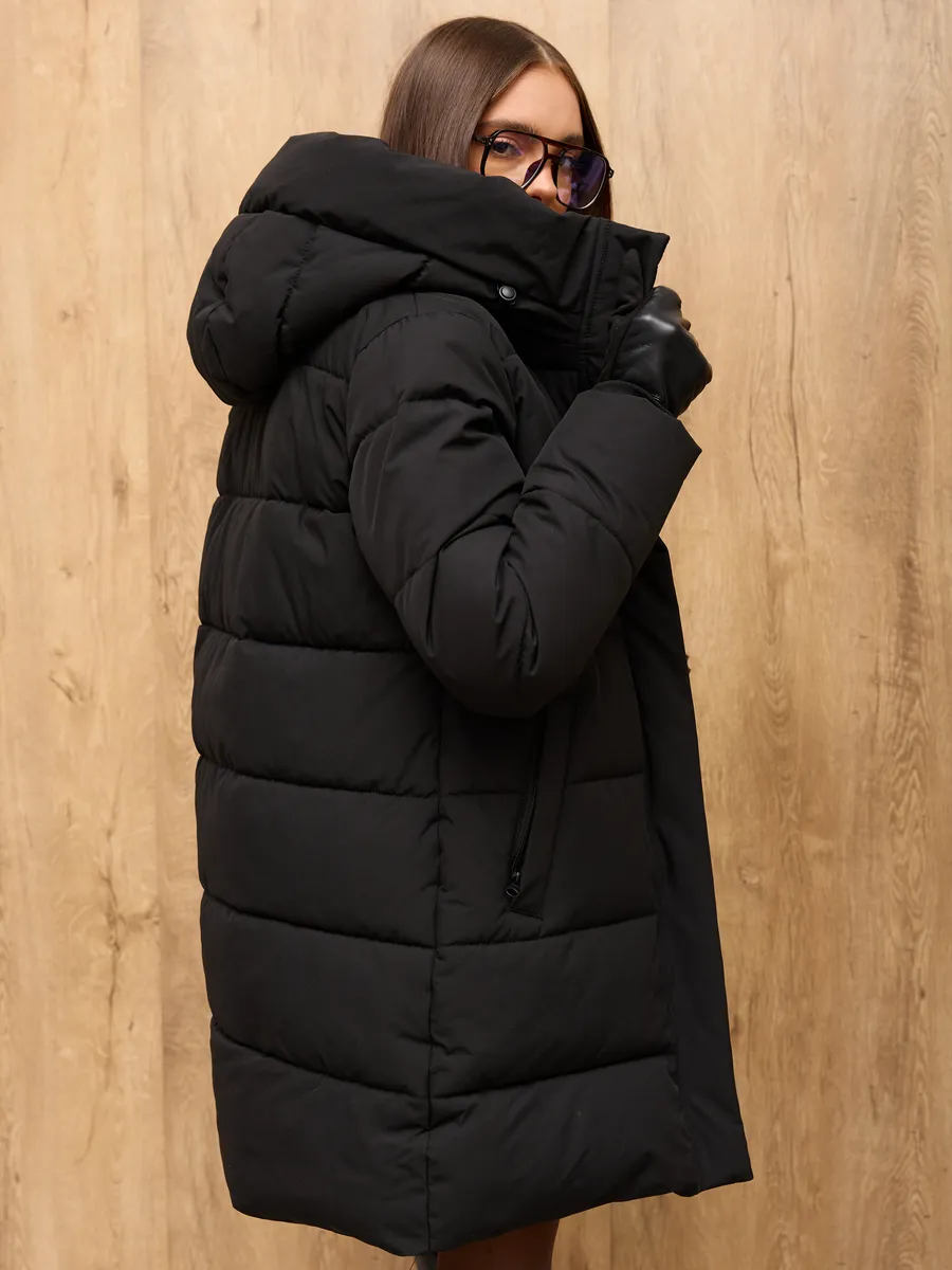 Куртка зимняя женская PULMOND — идеальный выбор для холодного сезона. Эта удлиненная модель с капюшоном обеспечит вам комфорт и тепло даже в самые морозные дни. Куртка выполнена из водоотталкивающего материала с утеплителем холлофайбер плотностью 250 г/кв.м, что гарантирует надежную защиту от ветра и холода в температурном режиме от -5 °C до -20 °C. Модель прямого покроя с прорезными и потайными карманами подойдет для повседневной носки и прекрасно дополнит любой образ.