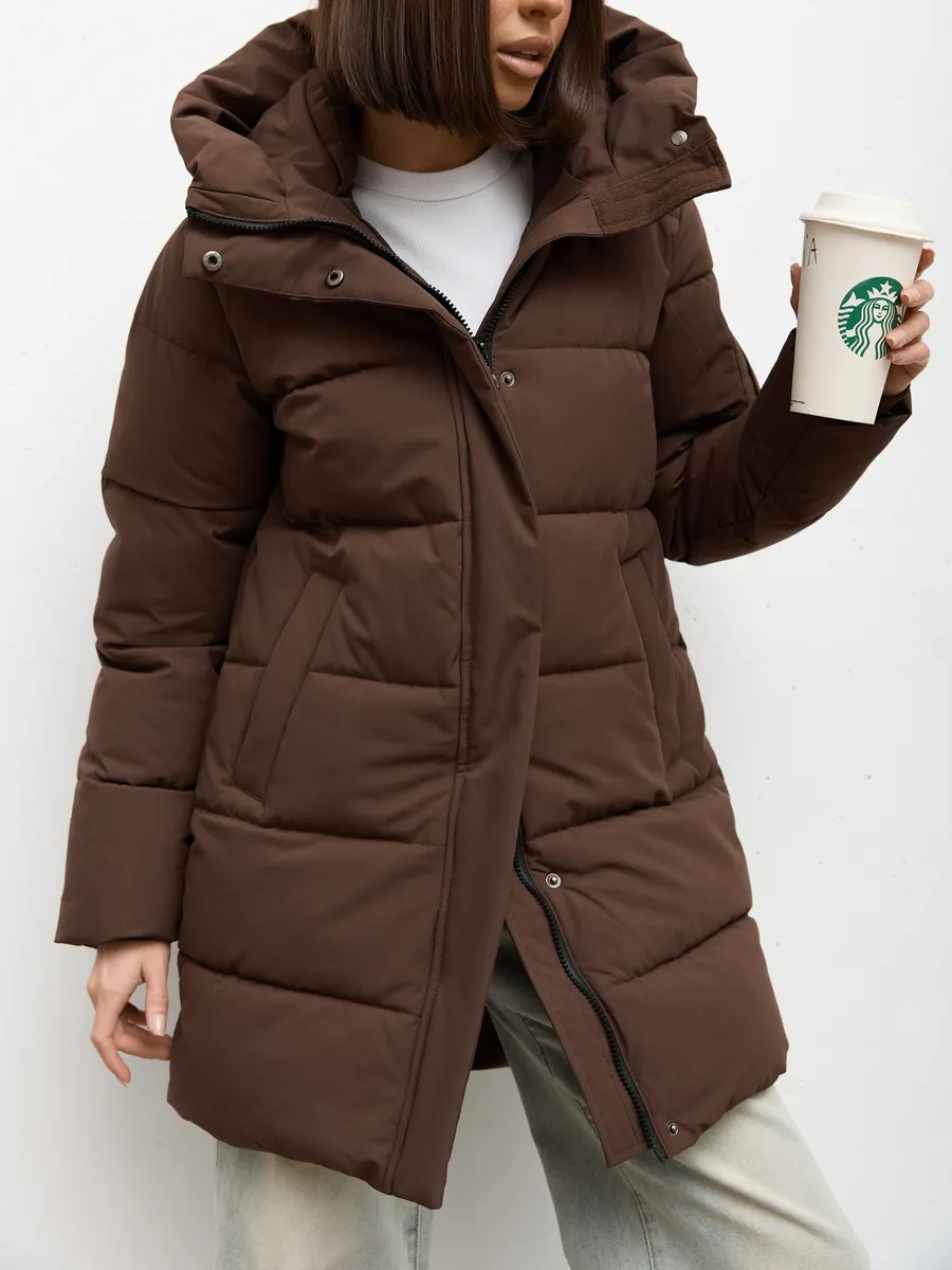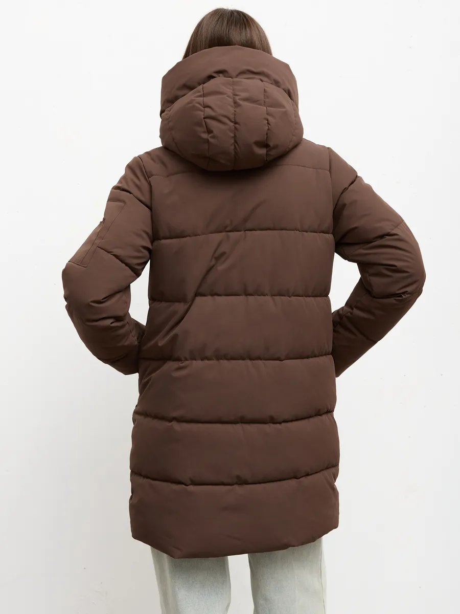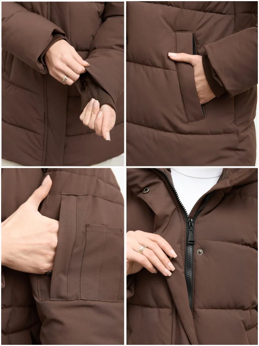 Куртка зимняя женская PULMOND — идеальный выбор для холодного сезона. Эта удлиненная модель с капюшоном обеспечит вам комфорт и тепло даже в самые морозные дни. Куртка выполнена из водоотталкивающего материала с утеплителем холлофайбер плотностью 250 г/кв.м, что гарантирует надежную защиту от ветра и холода в температурном режиме от -5 °C до -20 °C. Модель прямого покроя с прорезными и потайными карманами подойдет для повседневной носки и прекрасно дополнит любой образ.