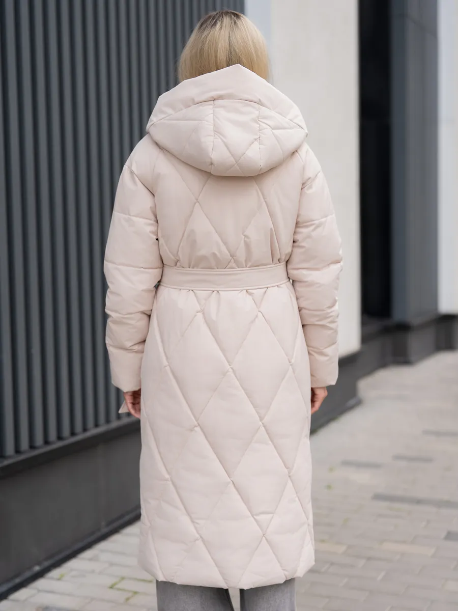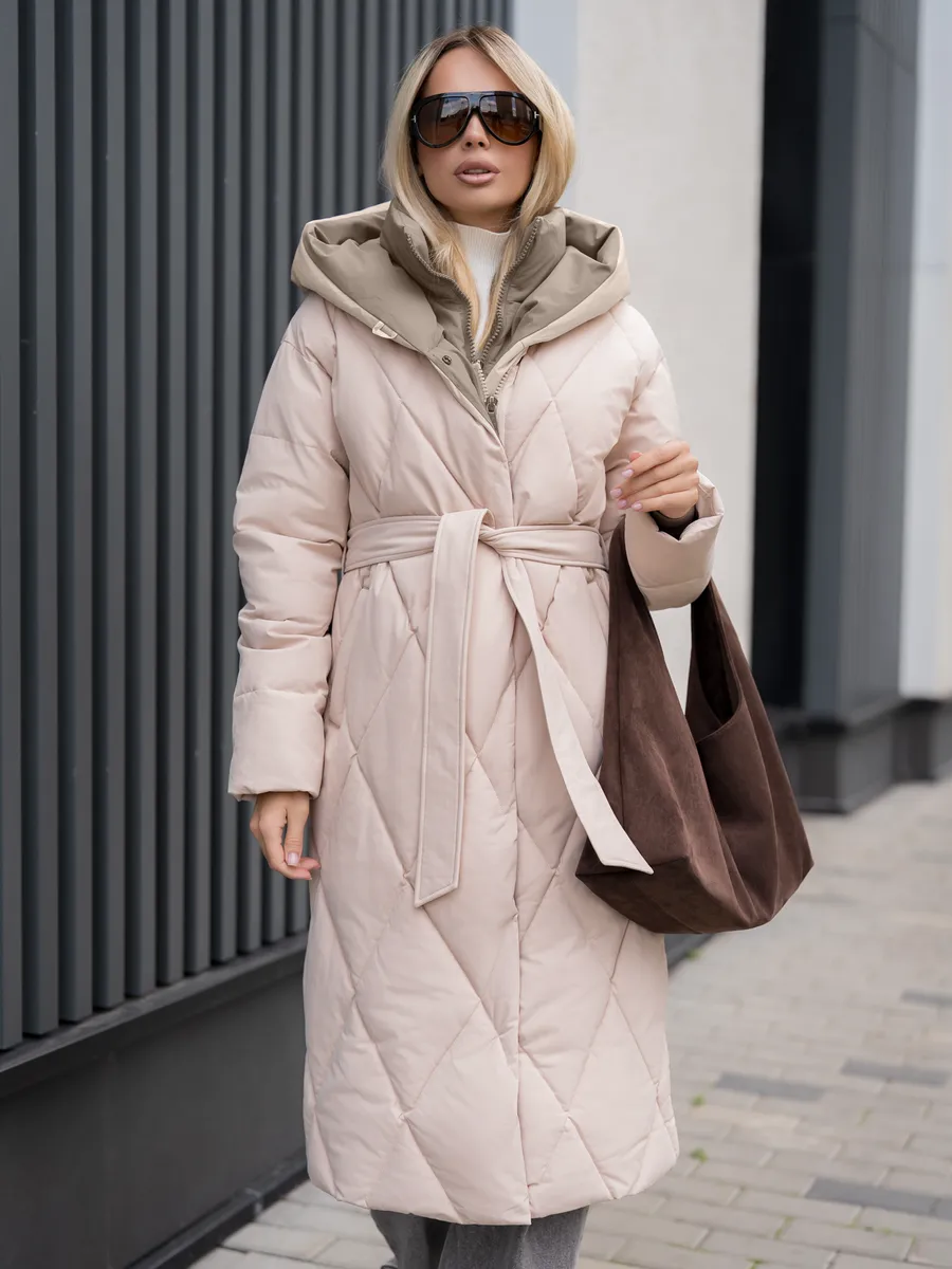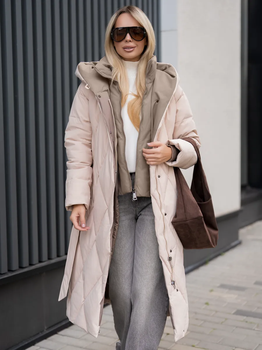 Пуховик женский зимний стеганный PULMOND - идеальный выбор для холодного сезона. Модель выполнена из плотного полиэстера с водоотталкивающей пропиткой, что обеспечит вам комфорт и защиту от непогоды. Стеганая конструкция и утеплитель холлофайбер с плотностью 300 г/кв.м гарантируют превосходную теплоизоляцию при температурах от -5 °C до -30 °C. Длинный покрой ниже колена, прямой силуэт и несъемный капюшон создают стильный и практичный образ, а прорезные карманы позволят удобно хранить необходимые мелочи. Этот пуховик станет незаменимым спутником в повседневной жизни, прогулках и путешествиях в холодное время года.